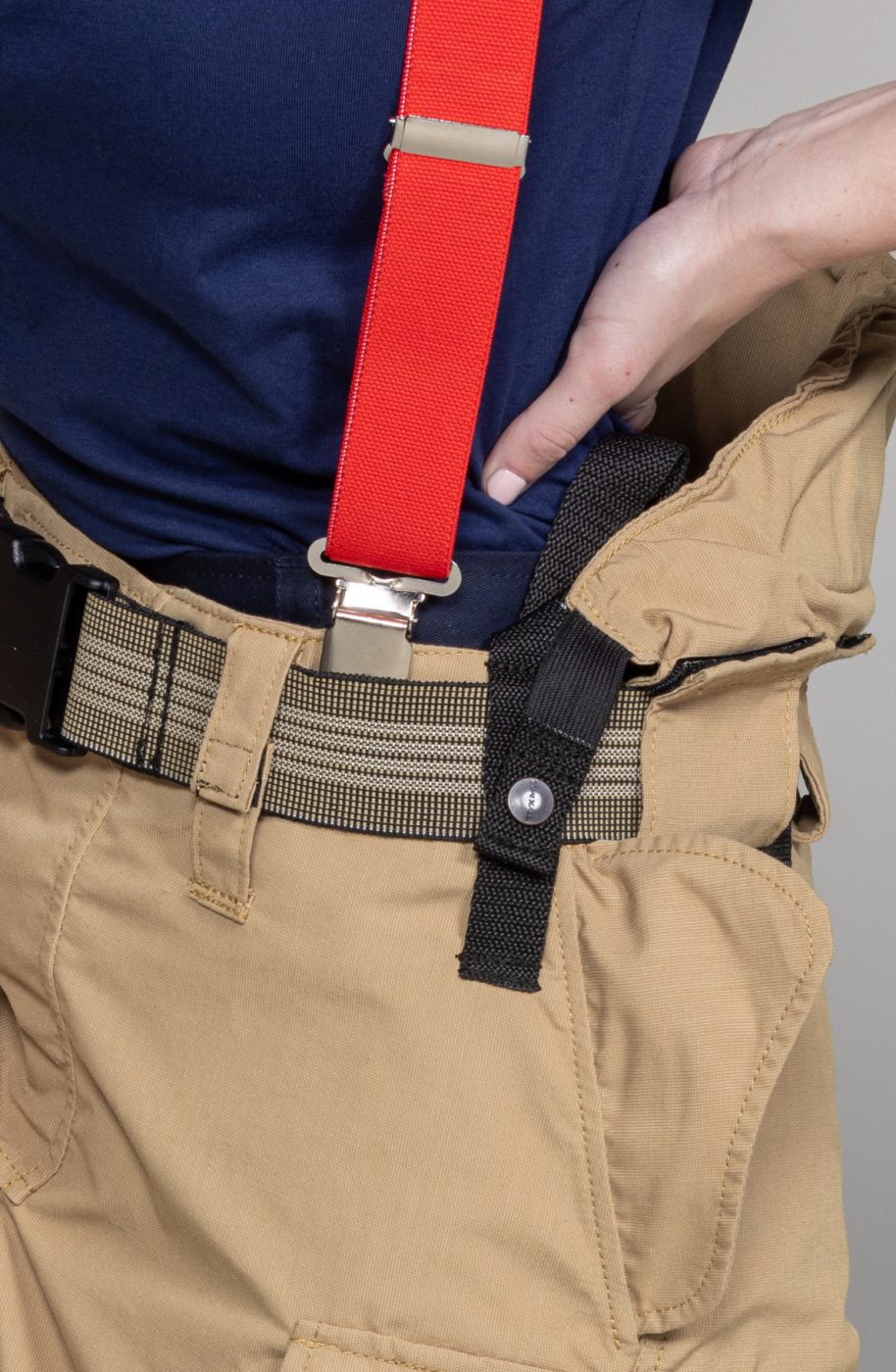Heavy duty metal alligator clip braces with 40mm width quality elastic. Adjustable from 78cm to 106cm – one size fits all