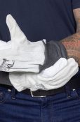 Soft handle leather drivers glove with a FR aramid knit cuff.
