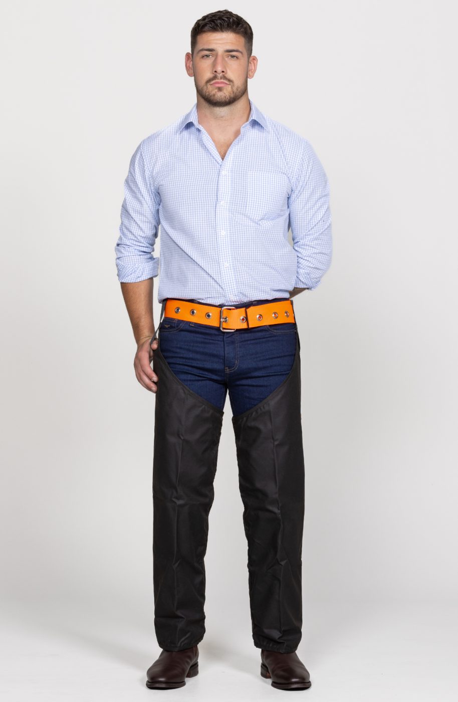 Oilskin Brown leggings; tough and durable material with exceptional performance. A light weight legging with belt loops at the top with a higher front and lower back design. Leggings that suit all elements keeping you protected, warm and comfortable.