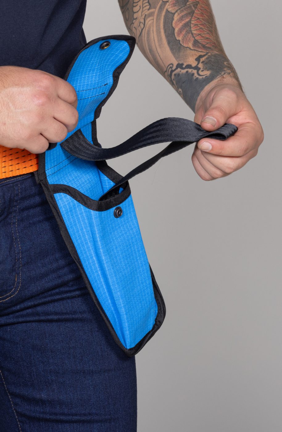 Ripstop Auto Return Wedge Holder; an individual wedge holder with webbing to remove wedges quicky. The Wedge Holder can easily slide on to belt and has a dome closure.